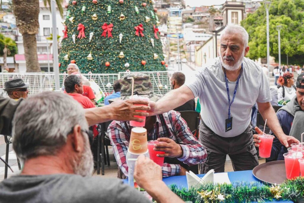 Paola Marín, encargada de la Oficina de Asuntos Religiosos de la Municipalidad de Coquimbo, resaltó que “quisimos compartir con las personas que más lo necesitan, por lo que organizamos una jornada especial junto con iglesias evangélicas, el Hogar de Cristo y el albergue municipal. Se compartió un desayuno, música y un espacio de encuentro fraterno, finalizando con la entrega de regalos. Esta actividad fue preparada durante varios meses, con mucho cariño y dedicación, pensando especialmente en las personas en situación de calle que más lo necesitan”.