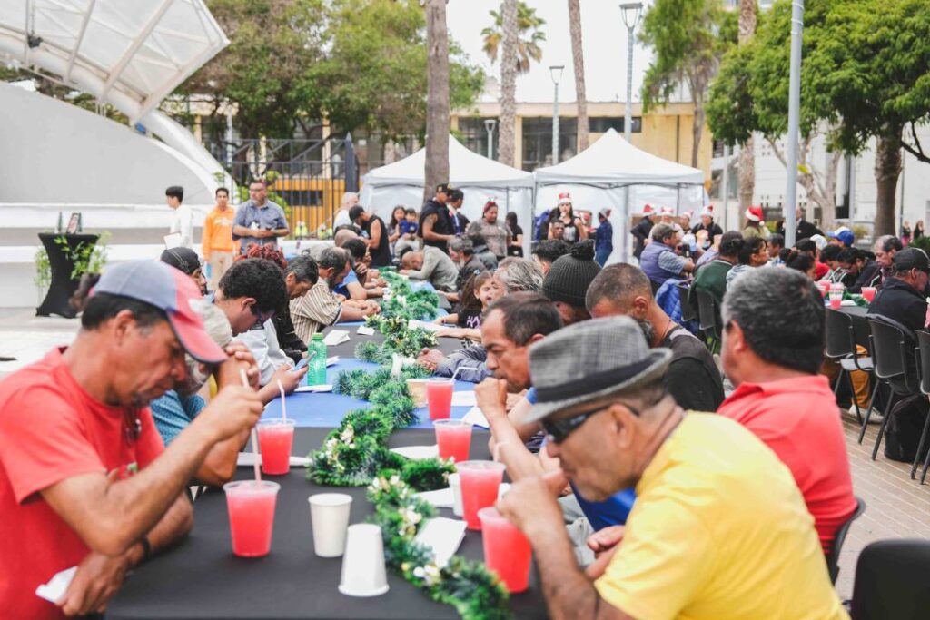 En un ambiente marcado por el espíritu navideño, la Plaza de Armas de Coquimbo fue escenario de la Plaza Solidaria Navideña, actividad organizada por la Municipalidad de Coquimbo, a través de su Oficina de Asuntos Religiosos, en conjunto con iglesias evangélicas, el Albergue Municipal y el Hogar de Cristo, colaboradores y voluntarios, con el objetivo de entregar acompañamiento a personas en situación de vulnerabilidad, especialmente a quienes se encuentran en situación de calle.